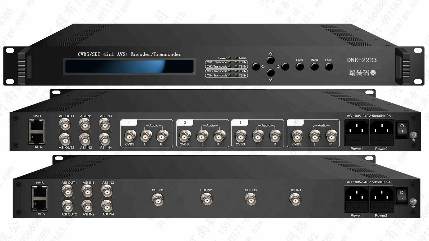 四合一AVS+編轉碼器是公司新的研發的符合GY/T257.1-2012國家標準的廣播級編轉碼器。該產品具有4路CVBS視頻及非平衡音頻輸入接口或4路SD-SDI接口、4路ASI輸入接口、1路IP輸入。設備可對4路標清音視頻進行編碼?;蛘呖蓪?路ASI、1路IP輸入的TS流轉碼成AVS/AVS+節目流輸出(多處理4套節目)。具有1組(2路)相同ASI輸出接口、IP輸出(支持SPTS、MPTS)。設備采用先進的音視頻編碼算法,在同等源視頻質量條件下,壓縮比遠優于傳統的MPEG-2標準,因此可廣泛的應用于數字電視廣播系統(包括地面、衛星、有線等)、IPTV或流媒體等服務系統中。