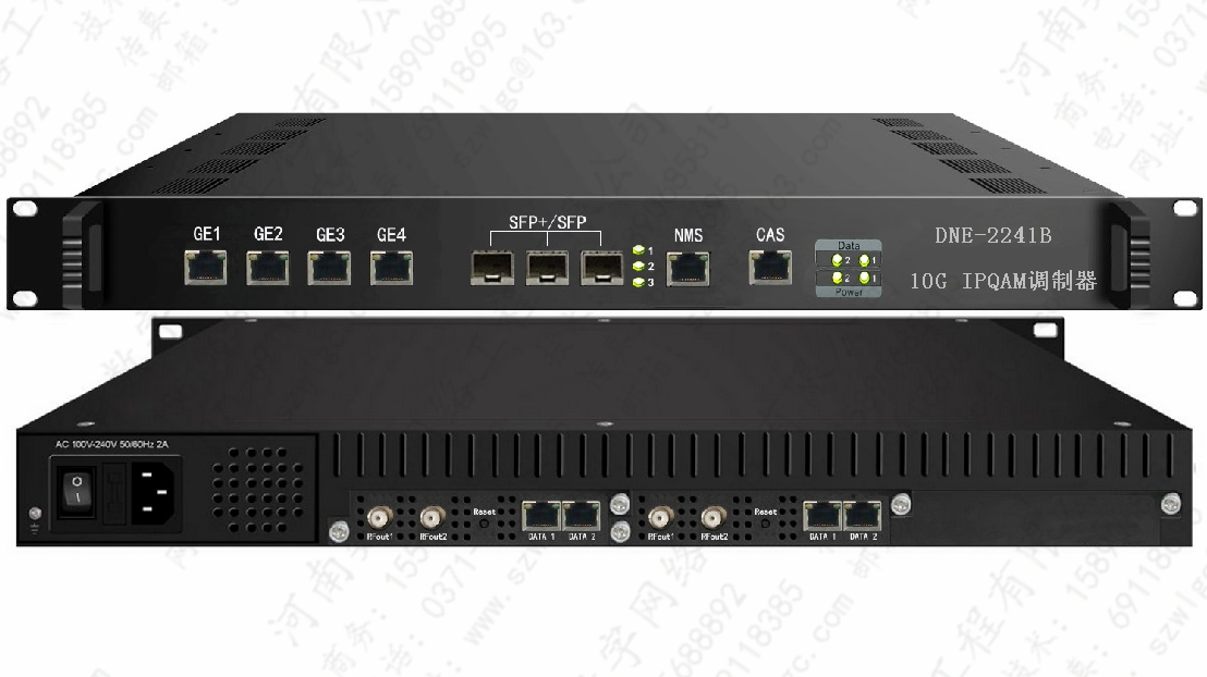 10G IP QAM調制器是我公司新一代的具有高集成高性能復用加擾QAM調制器一體機。支持96個復用、加密、QAM調制通道,通過4個射頻接口輸出。內置10G開關,可同時處理10G光信號和千兆電信號,該設備采用2個48路QAM調制模組組成,該設備支持4個千兆RJ45數據口輸入和3個SFP/SFP+萬兆數據光口輸入。 該設備具有高集成度、高性能、低成本的特點,非常適合新一代有線電視播出系統。
