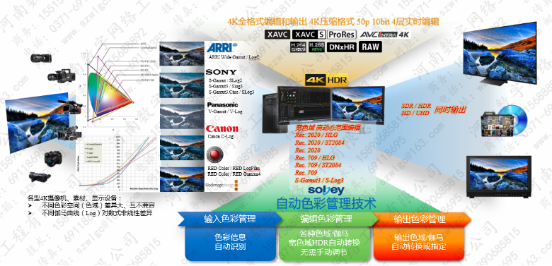 SDK智能編解碼引擎及A.R.T.5非線性編輯渲染引擎,創(chuàng)新的實(shí)現(xiàn)文件輸入自動化色彩信息識別,時間線編輯色彩空間和伽馬曲線自動轉(zhuǎn)換,輸出色彩空間和伽馬基于目標(biāo)自動轉(zhuǎn)換的自動化的色彩管理,大大方便4K寬色域多色域編輯制作。