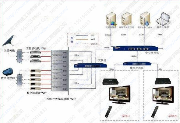 IP系統(tǒng)基本功能是對(duì)數(shù)字電視的直播、視頻點(diǎn)播、音樂(lè)點(diǎn)播、數(shù)據(jù)廣播、校園錄播、酒店綜合信息服務(wù)等交互業(yè)務(wù)。系統(tǒng)采用功能強(qiáng)大的數(shù)字信號(hào)處理器,實(shí)時(shí)地將衛(wèi)星電視信號(hào)和數(shù)字電視信號(hào)轉(zhuǎn)換為IP格式,通過(guò)成熟的IP組播技術(shù),以內(nèi)部局域網(wǎng)為基礎(chǔ),提供大量的數(shù)字電視廣播、影視點(diǎn)播、音樂(lè)點(diǎn)播、互聯(lián)網(wǎng)接入以及信息瀏覽、電子游戲等等各種互動(dòng)性多媒體服務(wù)。