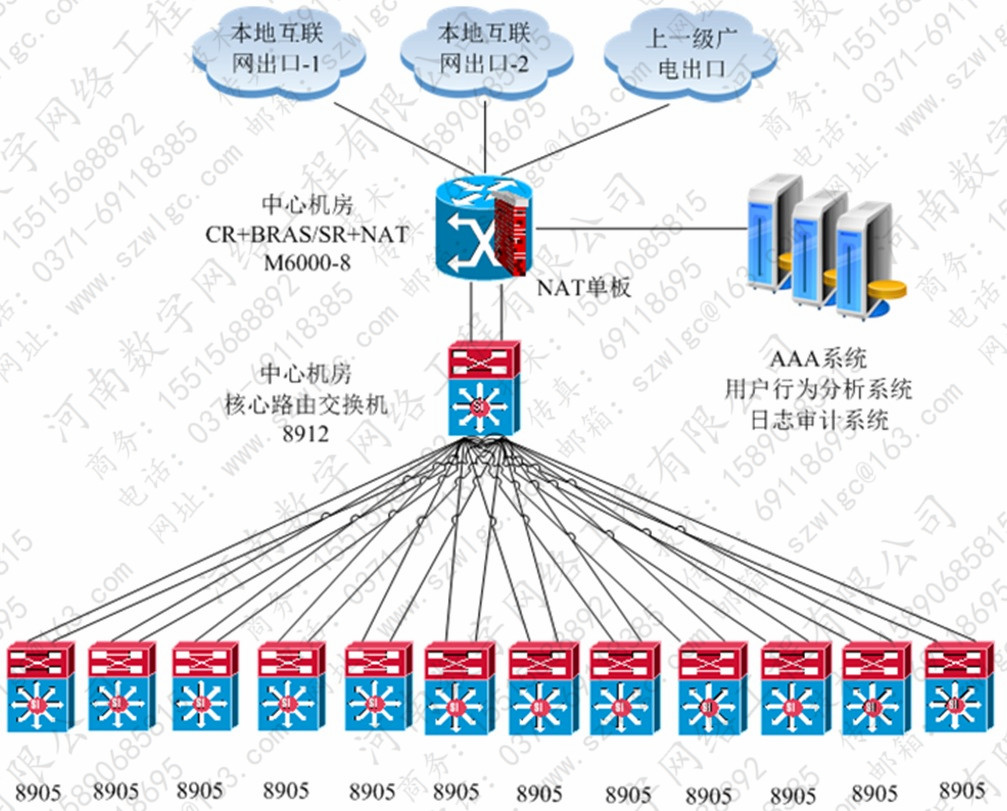 4.依據市縣級有線電視網絡目前的改造方案,針對不同的環境、業務功能詳細的描述了廣電城域網設計并實施的過程。