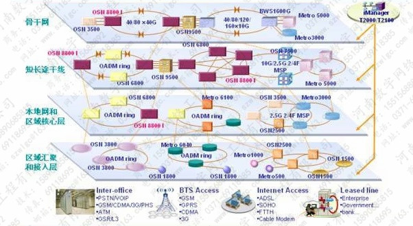 高速信息化OTN網絡,光傳送網(OTN) 技術是電網絡與全光網折衷的產物,將SDH 強大完善的OAM&P 理念和功能移植到了WDM 光網絡中,有效地彌補了現有WDM 系統在性能監控和維護管理方面的不足。OTN 技術可以支持客戶信號的透明傳送、高帶寬的復用交換和配置(小交叉顆粒為ODU1,約為2.5 Gbit/s),具有強大的開銷支持能力,提供強大的OAM 功能,支持多層嵌套的串聯連接監視(TCM) 功能、具有前向糾錯(FEC)支持能力。